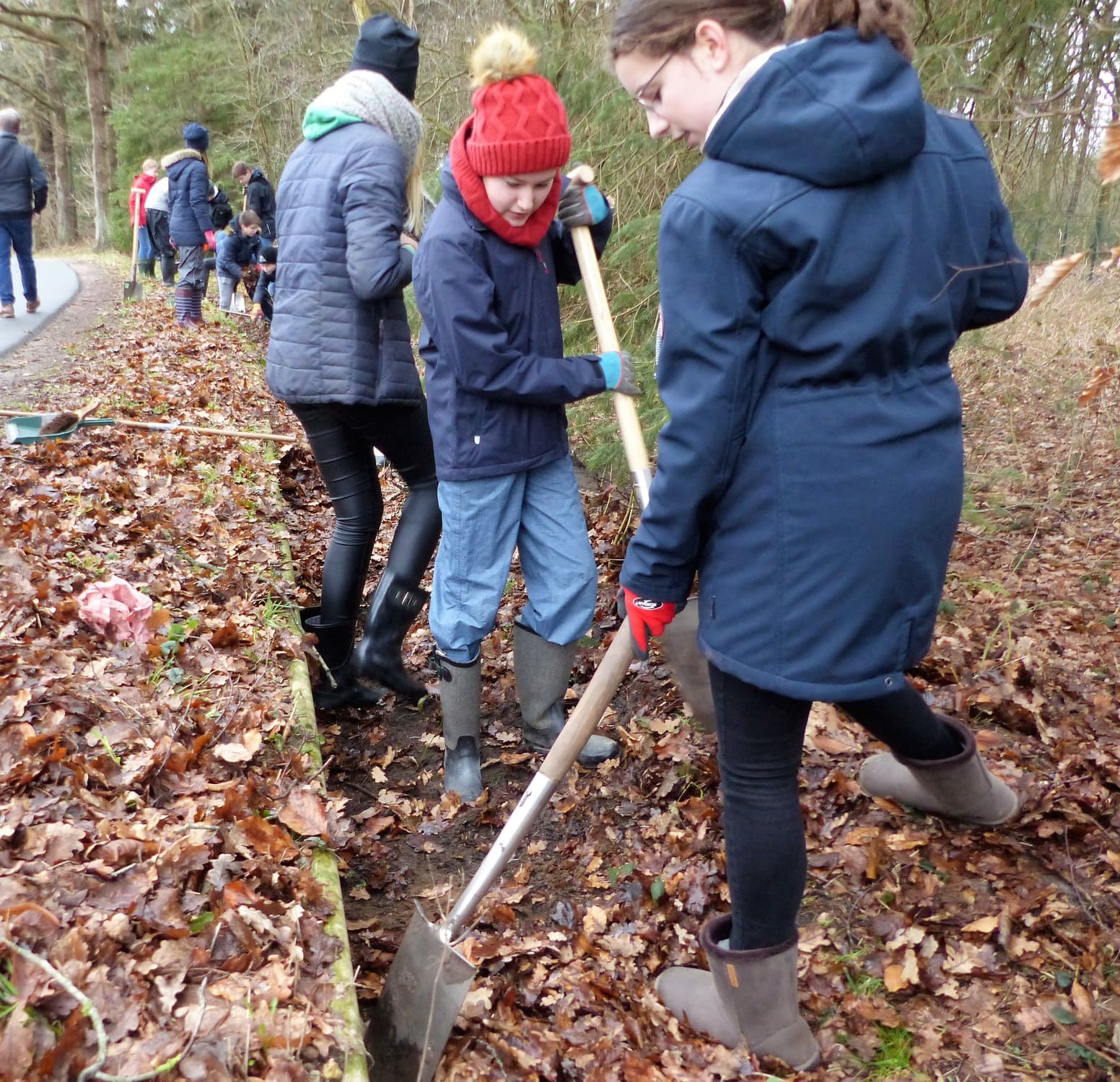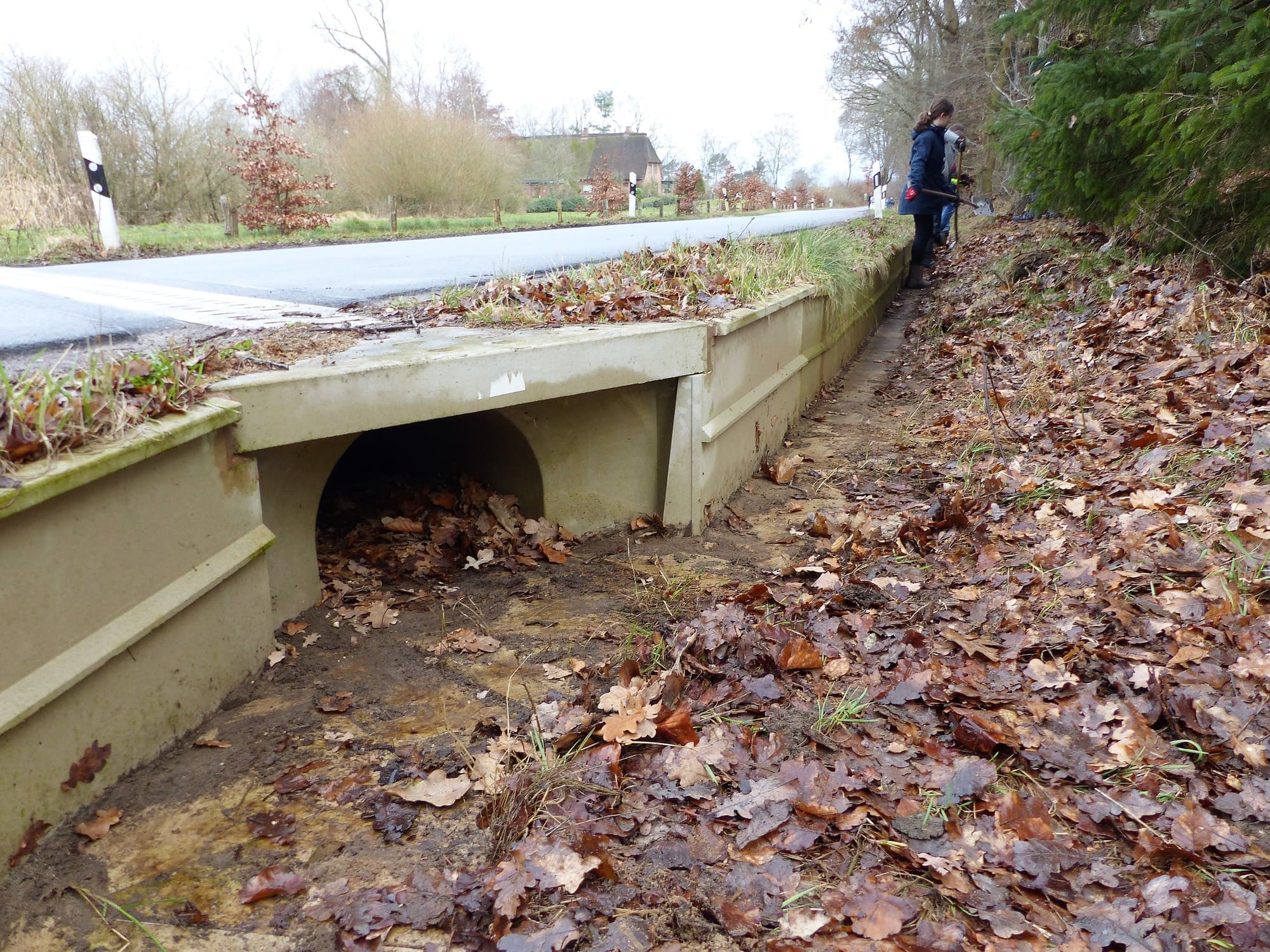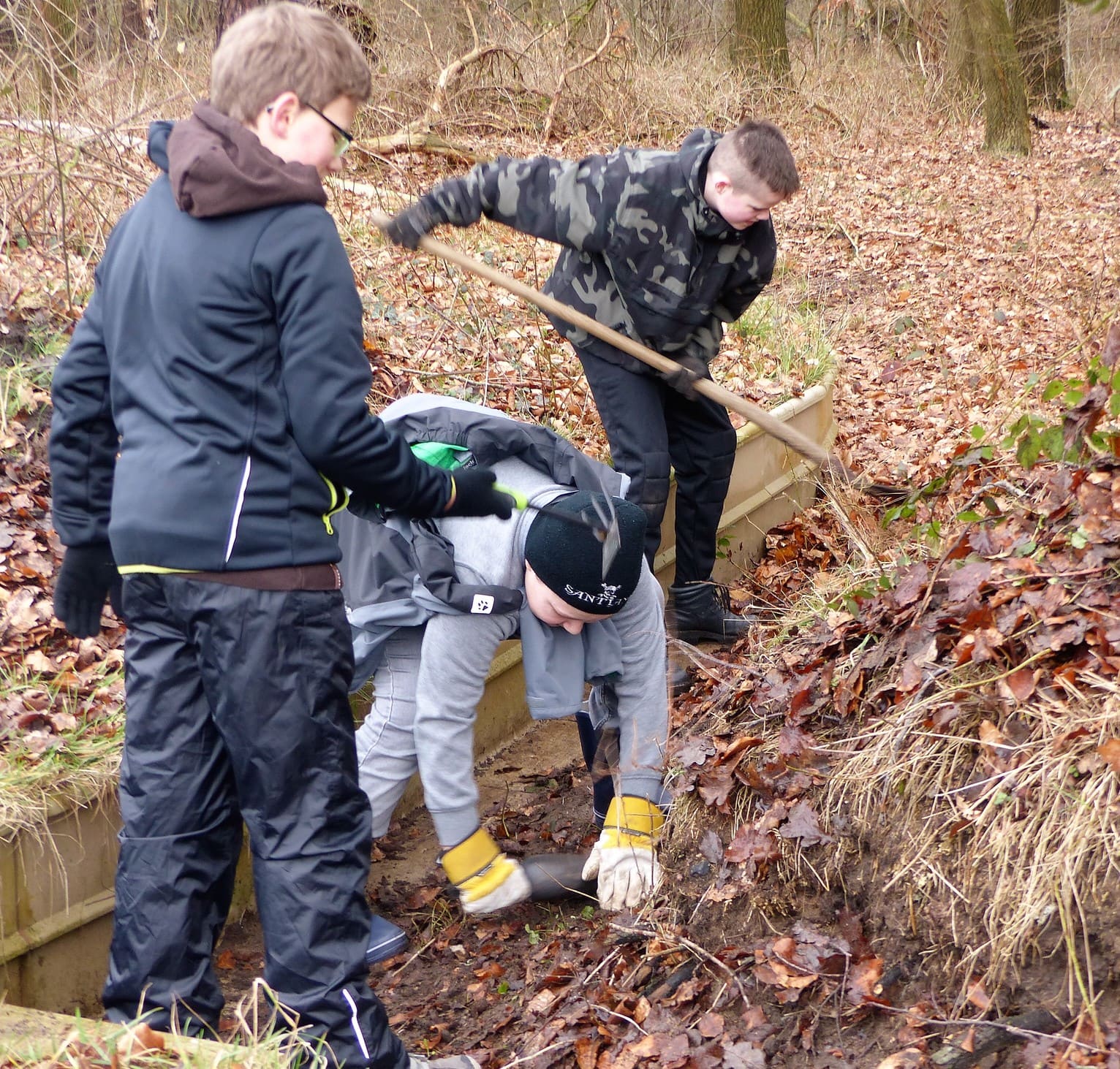 Dieses Jahr übernahmen wir, die Klasse 7a diese Aufgabe. Nach einer kurzen Besprechung ging es los. Wir arbeiteten sehr fleißig und ließen uns nicht einmal von Regenschauern abhalten, um das von der Firma ACO-Ahlmann erbaute Amphibien-Leitsystem in Fockbek zu säubern und auch den Weg dorthin frei zu machen. Äste mussten zurückgeschnitten werden und eine Menge Laub und Müll räumten wir weg. Als Lehrkräfte waren Frau Schulz und Herr Borchert dabei.